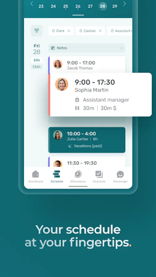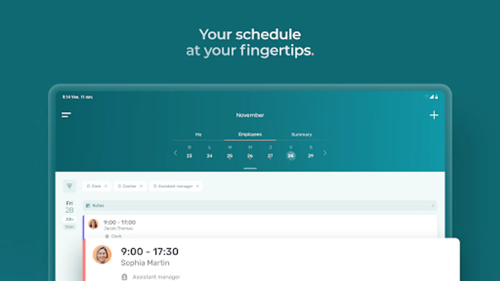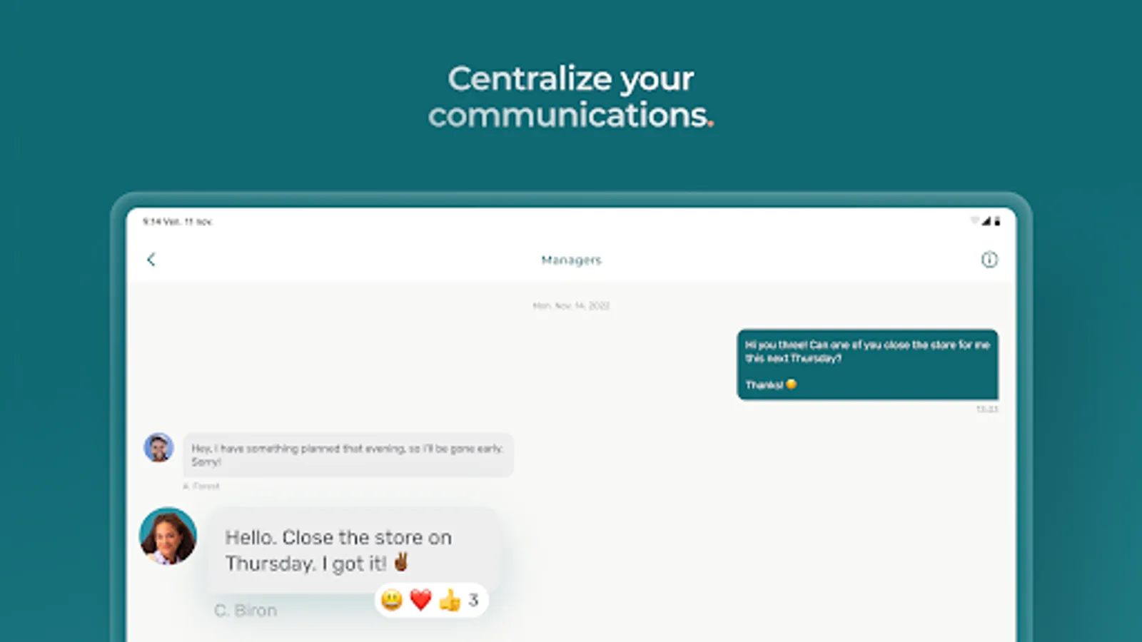 Simplify schedule management, work time tracking, and communications with the Agendrix mobile app.