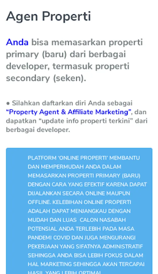 Apart from helping with the job duties of property agents, this platform is also easy to use by anyone, including new agents who are still inexperienced and this platform can help and make it easier for property buyers to get the property agent they want or be in one location with property buyers.