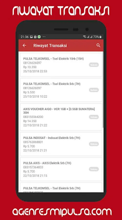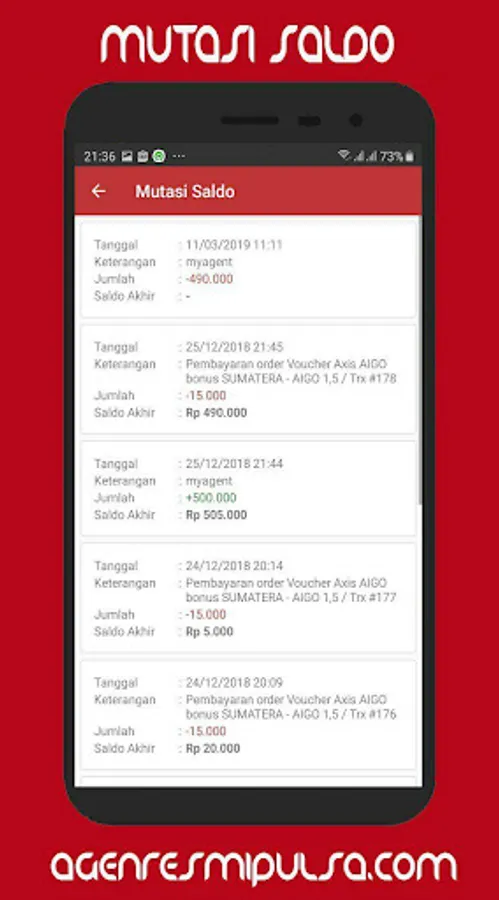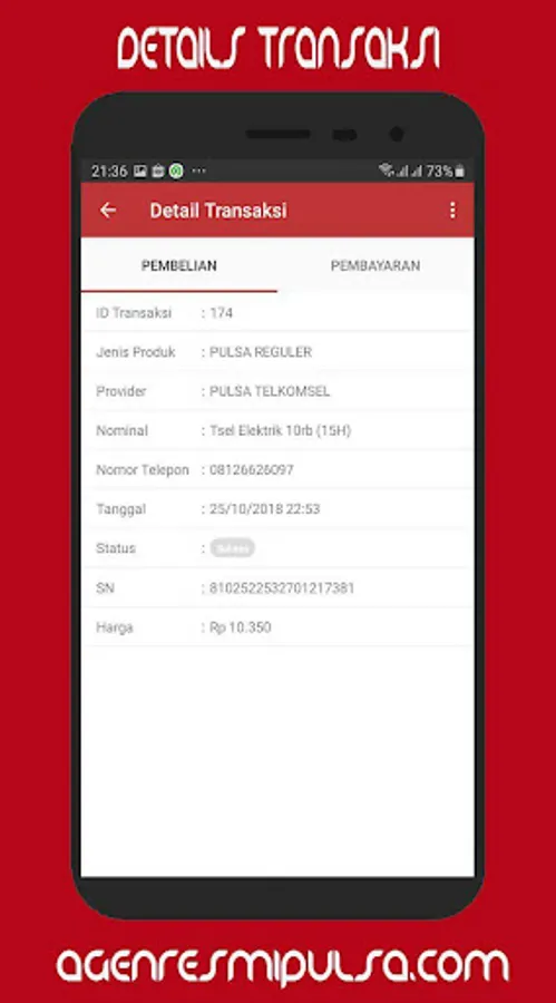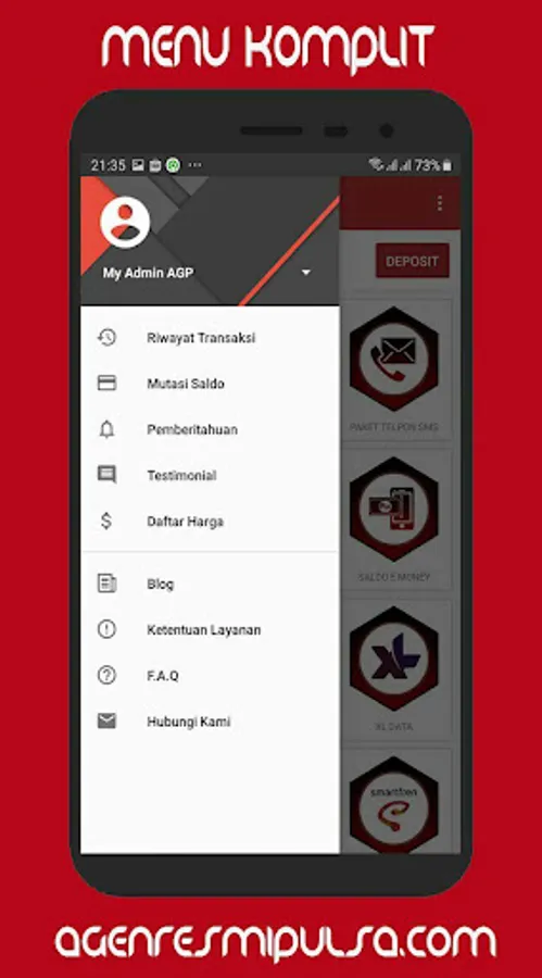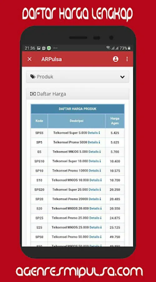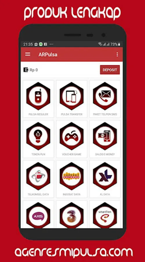 Agenresmipulsa android application is a free mobile application for agenresmipulsa.com loyal members anywhere. This application makes it easy for you to do various transactions such as top up all operators, electricity tokens, check your bills for free, purchase game vouchers, etc.