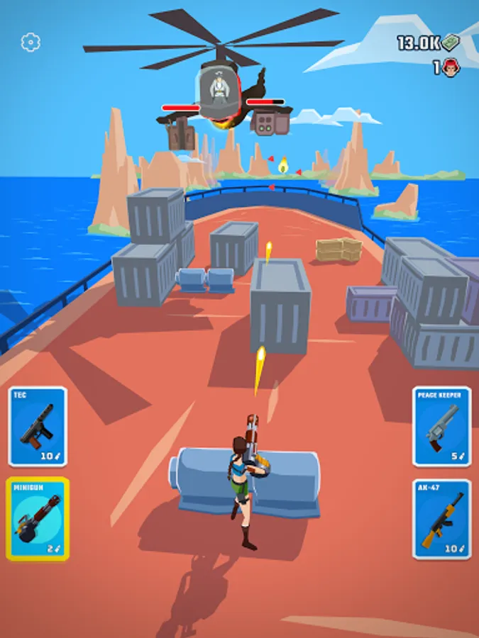 ★ Hold to shoot! Neat game mechanics make Agent Action easy to play but endlessly entertaining, with enough tactical challenges in weapon selection, targeting and fire-rate to keep more experienced players engaged. Between levels, you’ll have the choice between health boosters, armor or more awesome firepower, and your choice could be the difference between victory and death.