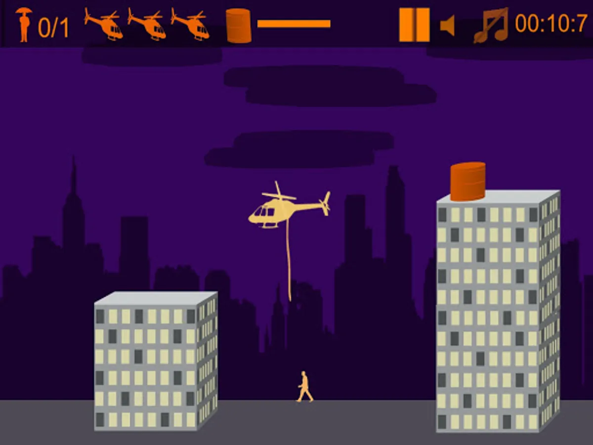 Tilt your device to airlift the secret agents to the safety of the helipad before the secret police find them. Watch out for blimps, buildings and blinding lasers. And make sure to fuel up before you run out!