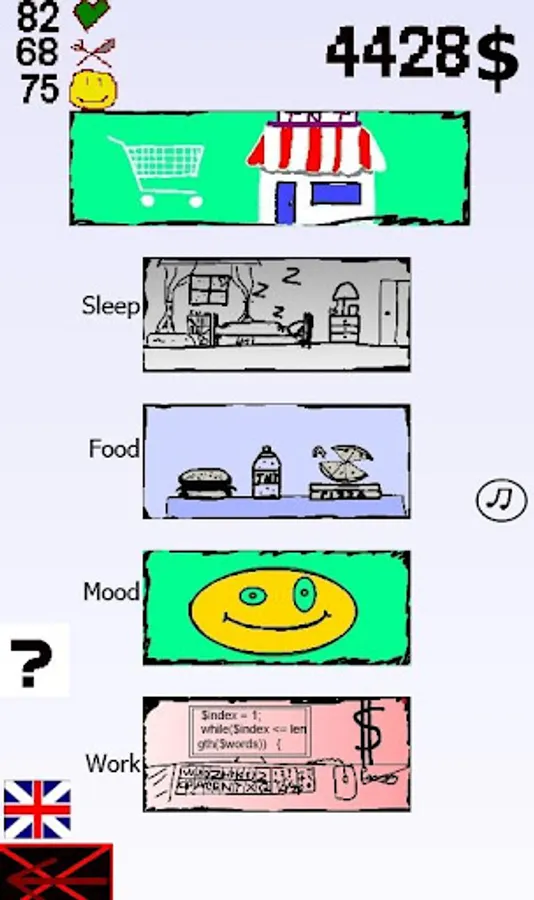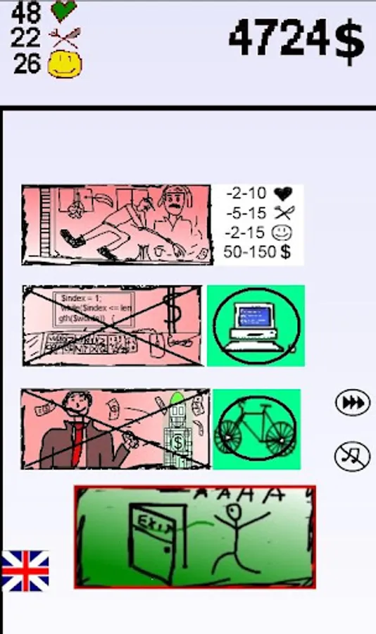 Simulation life janitor who dreams of becoming a buisnesman with its own castle.