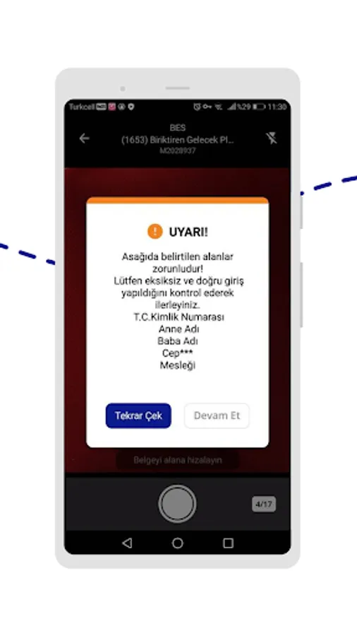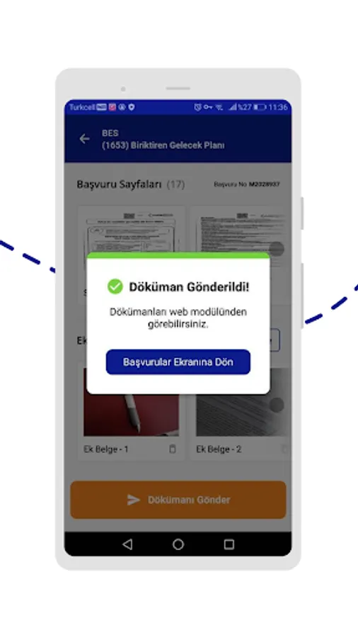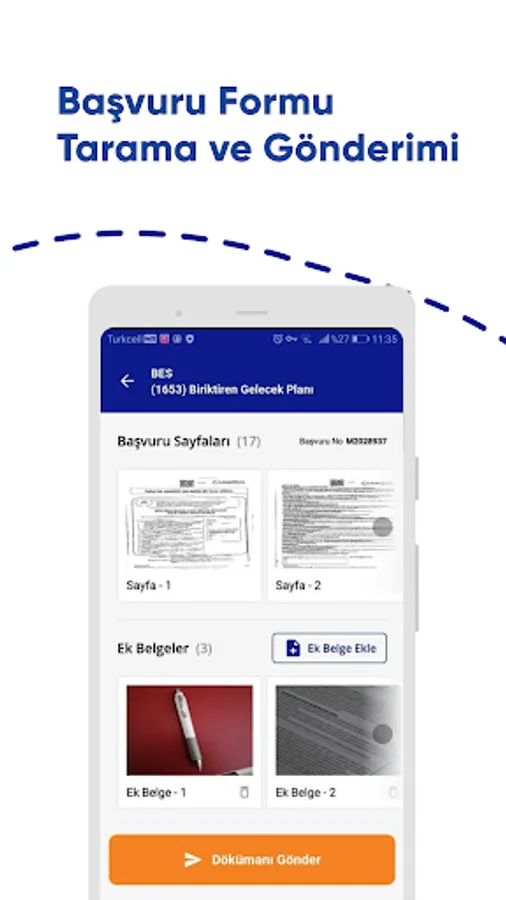 You can view the operational process follow-up details of the scanned forms of BES and HAYAT applications on AgeSA ÇekSender Mobile. You can scan and send the missing documents for correction and carry out the Operational and Technical evaluation processes.