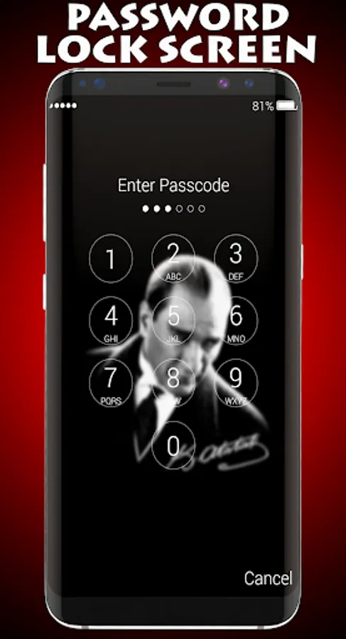 Mustafa Kemal Ataturk Lock Screen looks stunning on any phone! Each time you unlock your mobile you will feel the exquisiteness and uniqueness of this well-designed and powerfully lit lock screen. It makes the unlocking of your phone more fun and functional while providing complete protection from unwanted access. It allows you to set multiple lock screen and app locker methods like pass code to protect your privacy, but also show real time clock and date and customize your phone with a wallpaper screen you choose!