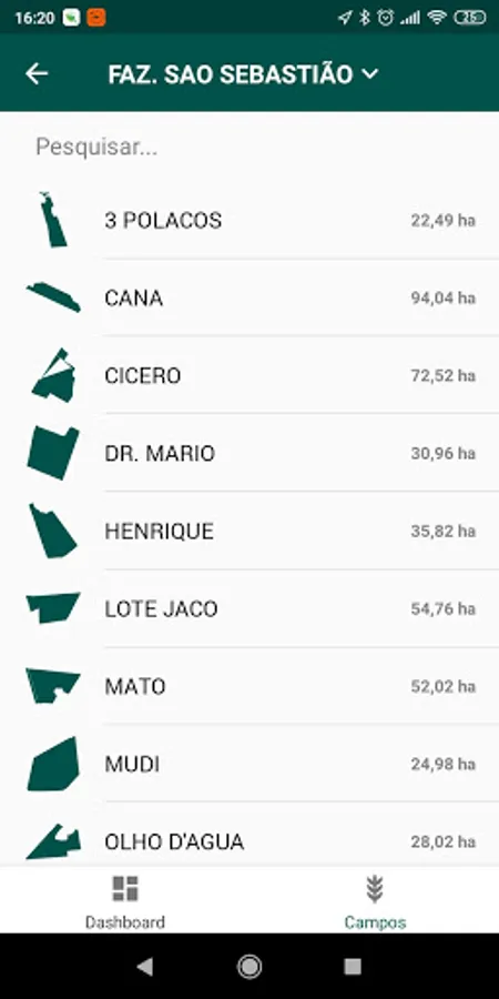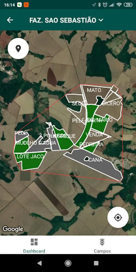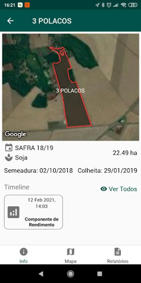 Application integrated with the FarmUs platform, used for visualization on map of farms, groups of farms, lots, visualization of data of lots, as well as generation and monitoring of field reports.