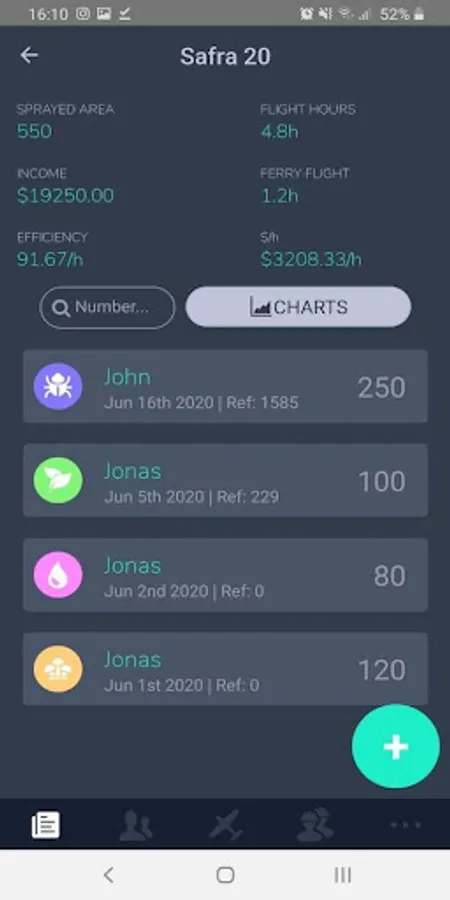 - Add ag pilot jobs with data like date, customer, loader, area, rate, etc.