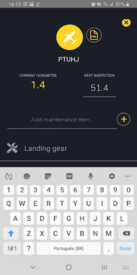 - Manage aircraft horimeter, generate reports and add maintenance itens.