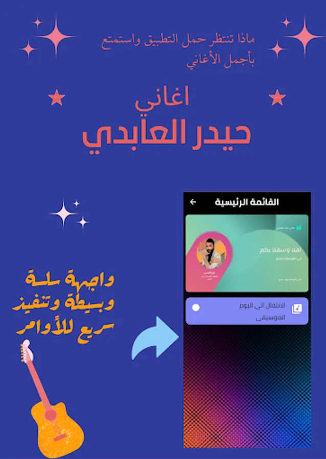 ✨ It is an application dedicated to fans of the artist Haider Al-Abedy, Dr. Al-Tarab, and fans of Iraqi songs and sad songs. It also contains wedding songs by Haider Al-Abedy.
