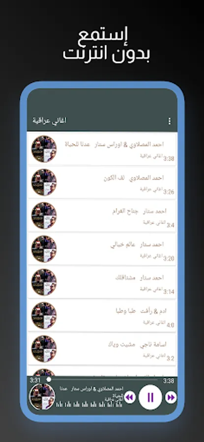 An application that contains all the new, old and exclusive Iraqi songs 2023 for the year 2022 - 2023 without the need to be connected to the Internet with continuous updating