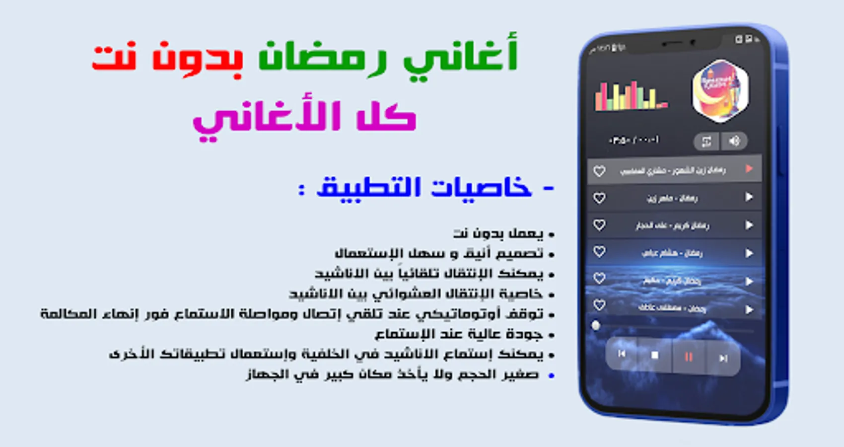 All Ramadan songs in one application offline, we hope that you like it