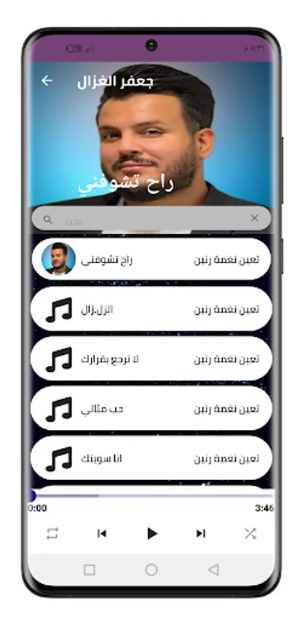 The second feature in the application of Jaafar Al-Ghazal 2023 songs without the net is to update the songs of Jaafar Al-Ghazal directly within the application, so when Jaafar Al-Ghazal presents a new song, we download it directly.