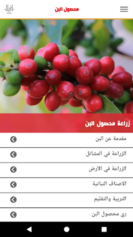 In this application, the most important needs of the coffee crop will be explained and clarified, such as (nutrition - irrigation - protection and prevention of pests and diseases - good agricultural operations - good storage of the crop) and appropriate scientific solutions that will achieve the following goals:
