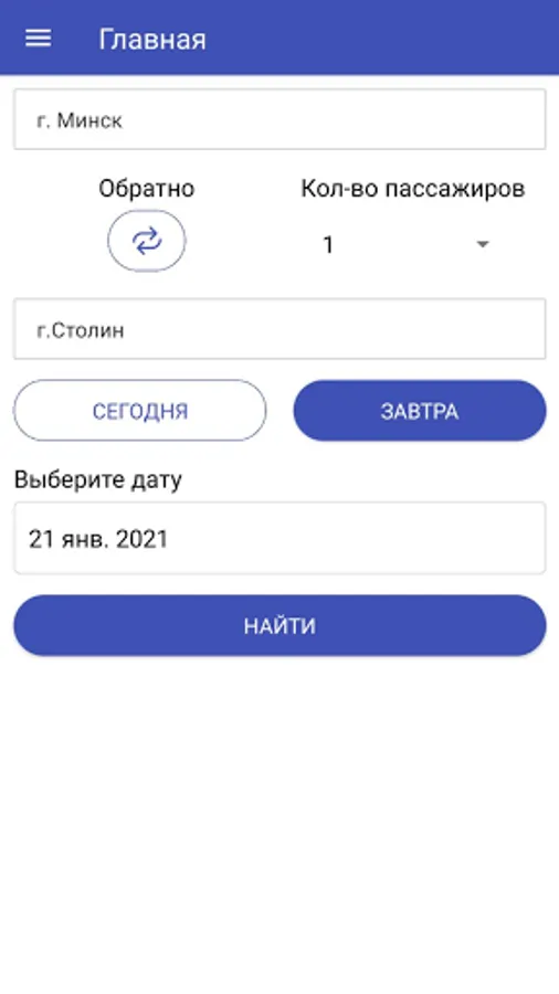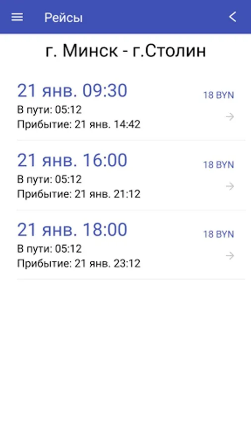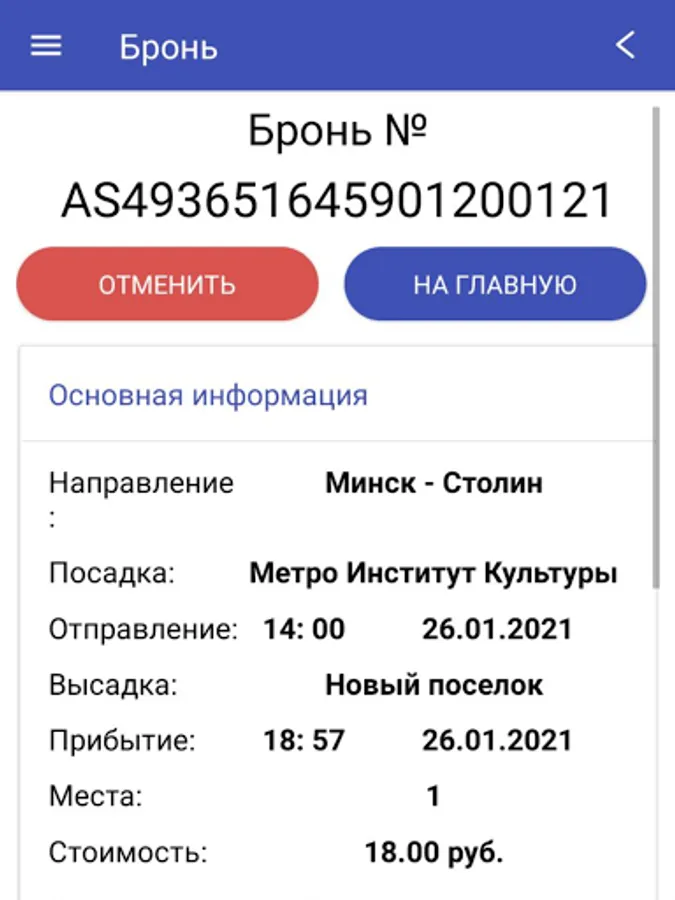 Приложение для бронирования билетов пассажирских перевозок по направлению : Лида - Минск - Лида