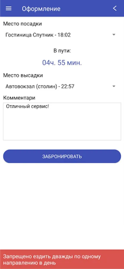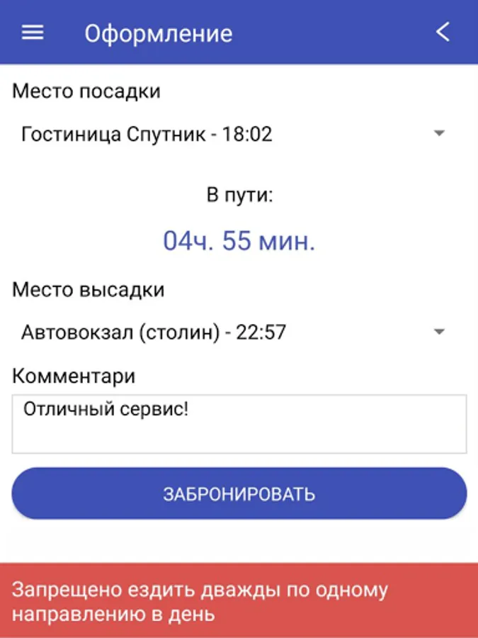 Application for booking tickets for passenger transportation in the direction: Crimea - Anapa - Crimea, Crimea - Novorossiysk - Crimea, Crimea - Krasnodar - Crimea