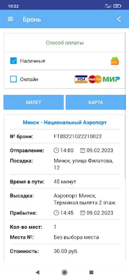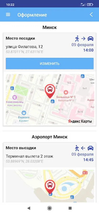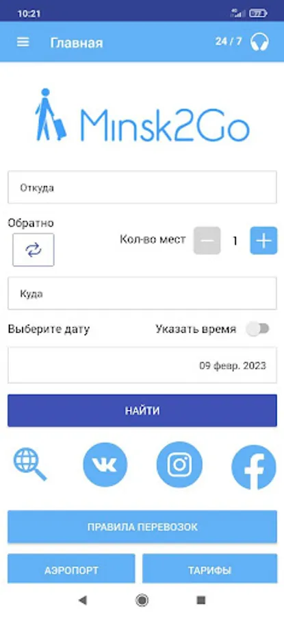 Using the Minsk2Go application, you can order and pay for trips to / from the city of Minsk.