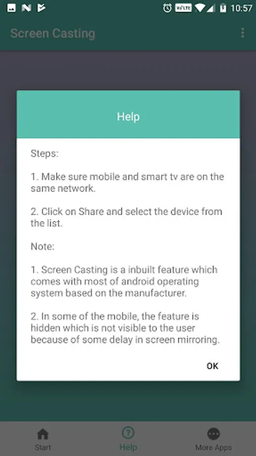 Screen Cast Assistant app will help user to search and Mirror/Share/Cast users android mobile or tablet's screen on Miracast or Google Cast enabled smart TV(Television) Or Display or Wireleass dongles or adapters.