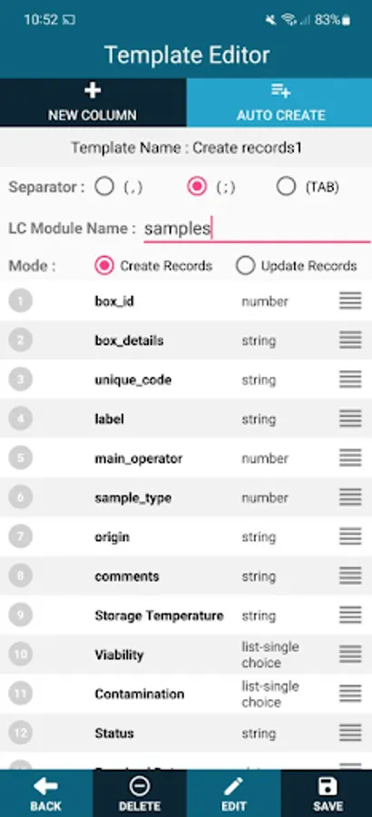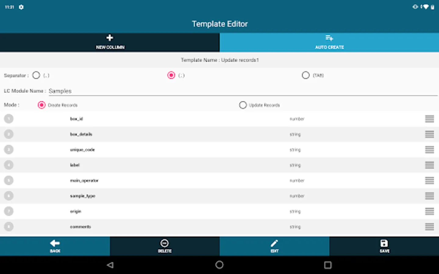 ListMaker provides a quick generic list making service to be used by our LabCollector. It easily can create template with multiple column types including text, number, barcode, location and date.