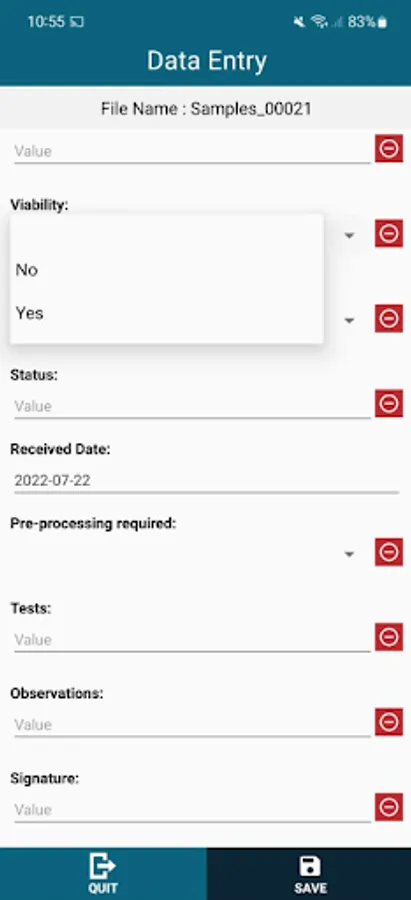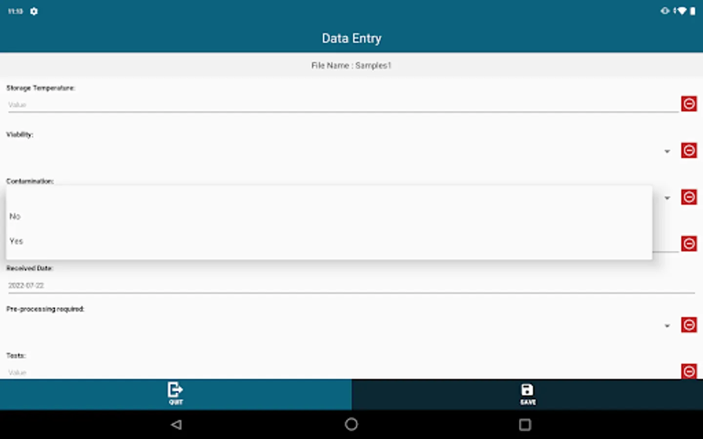 Data entry is really fast and simple in this application, you can send the file via Email or directly with the LabCollector API.
