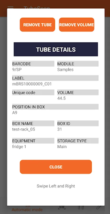 This app will connect to your LabCollector via API. It works with both 1D and 2D barcodes (internal barcodes, precoded tubes, aliquots...) and gets details for samples. It also allows you to destock tubes/vials or to remove volume. Barcode lists can also be generated in a CSV file and sent by email. The app requires a working LabCollector instance with an API web service configured.