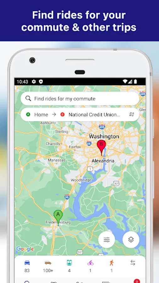 Use the ConnectingVA app to find rides and earn rewards throughout the Commonwealth of Virginia.