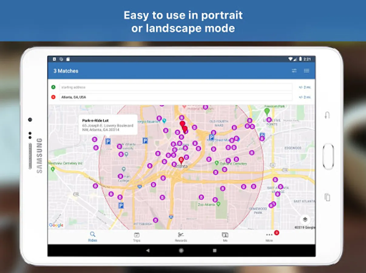 Use the GA Commute app to find rideshare matches and earn rewards in Georgia.