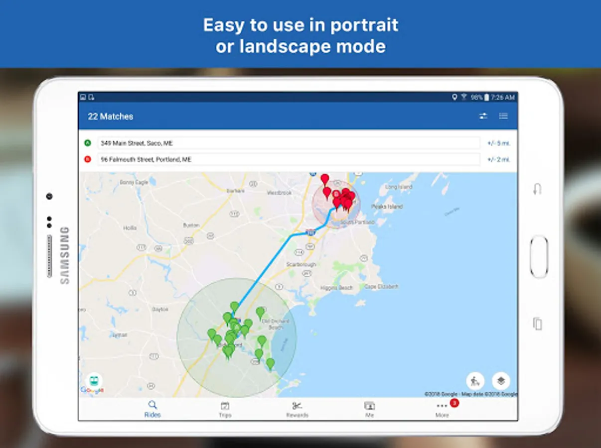 Use the GO MAINE app to find rideshare matches and earn rewards in Maine.