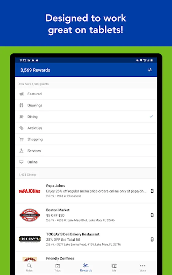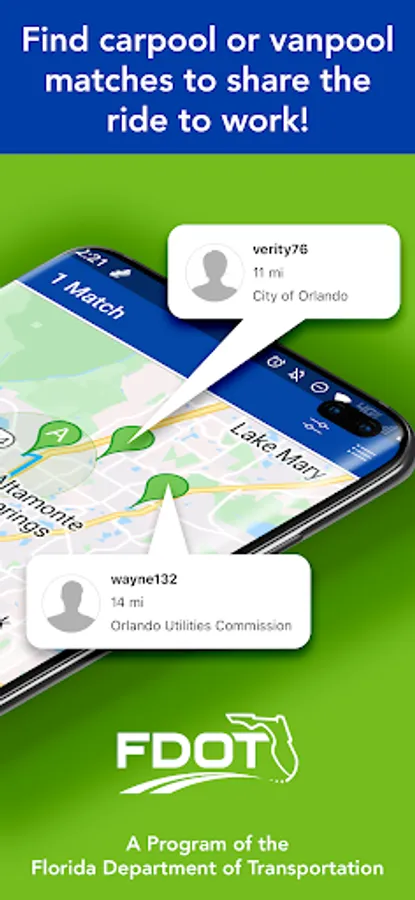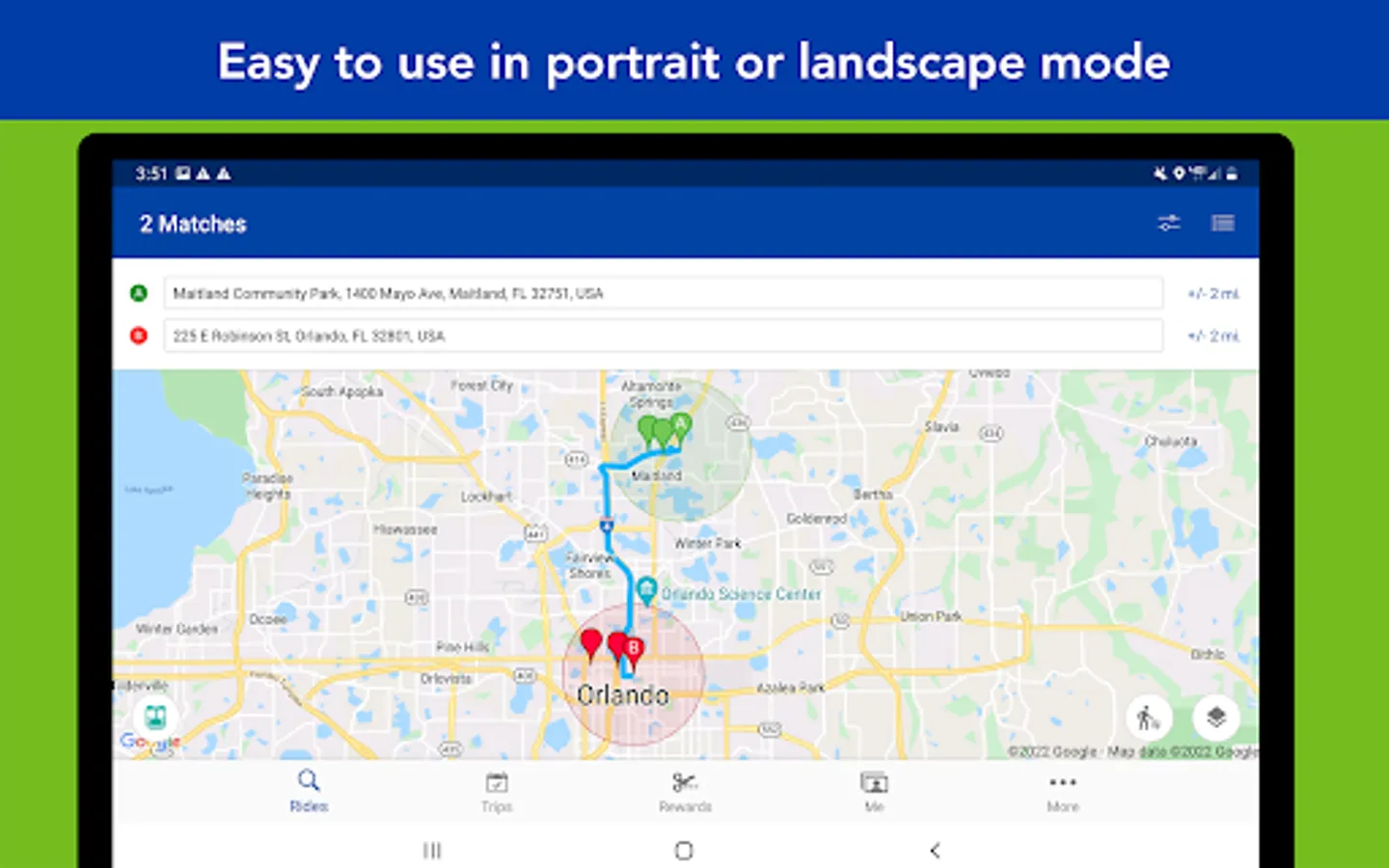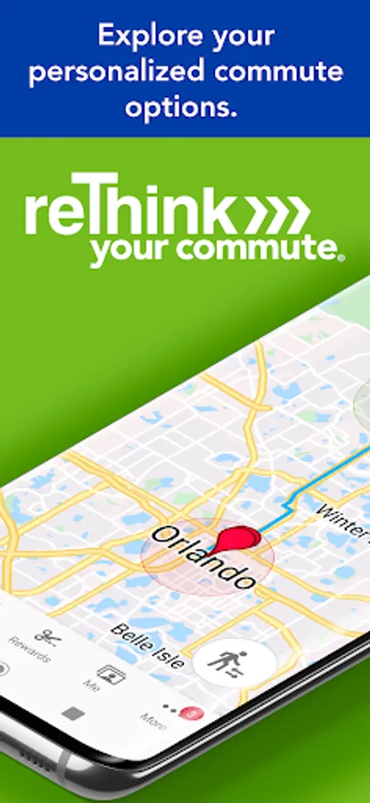 Use the reThink Your Commute app to find rideshare matches and earn rewards in Central Florida, including Orlando and Daytona areas.