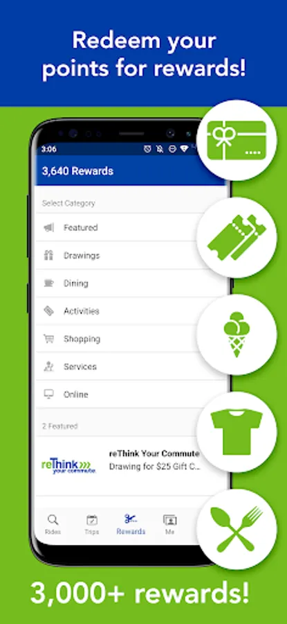 Simply record your carpool, vanpool, walk, bike, telecommute, or transit trips in your reThink account and earn points that can be redeemed for rewards.