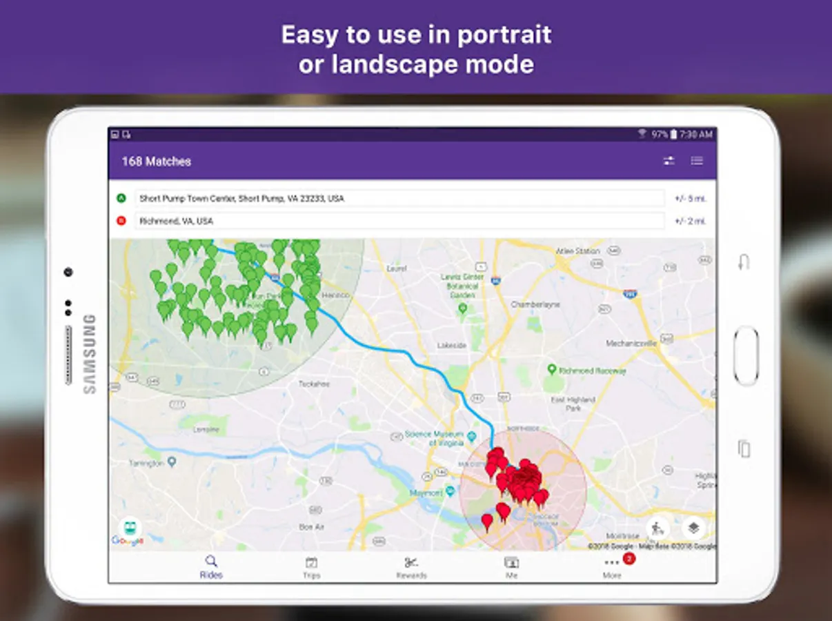 Use the RideFinders app to find rideshare matches and earn rewards in the greater Richmond, VA region.