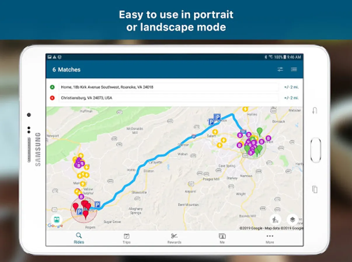 Use the RIDE Solutions app to find rideshare matches and earn rewards in the greater New River and Roanoke Valleys and Region 2000 regions of southwestern Virginia.