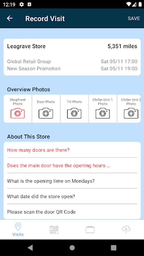 Installers and Merchandisers take photos and videos on site and answer questions and capture data about the site. All data is automatically tagged with the site name, fitter name, location and timestamp.