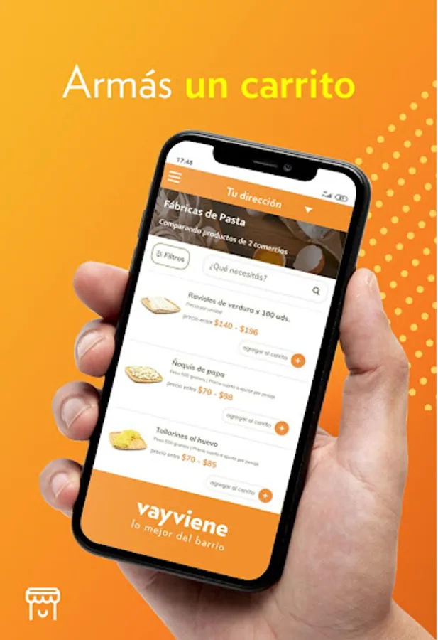 Make your purchases in the neighborhood without leaving your home and compare the price, stock and quality of your closest stores.