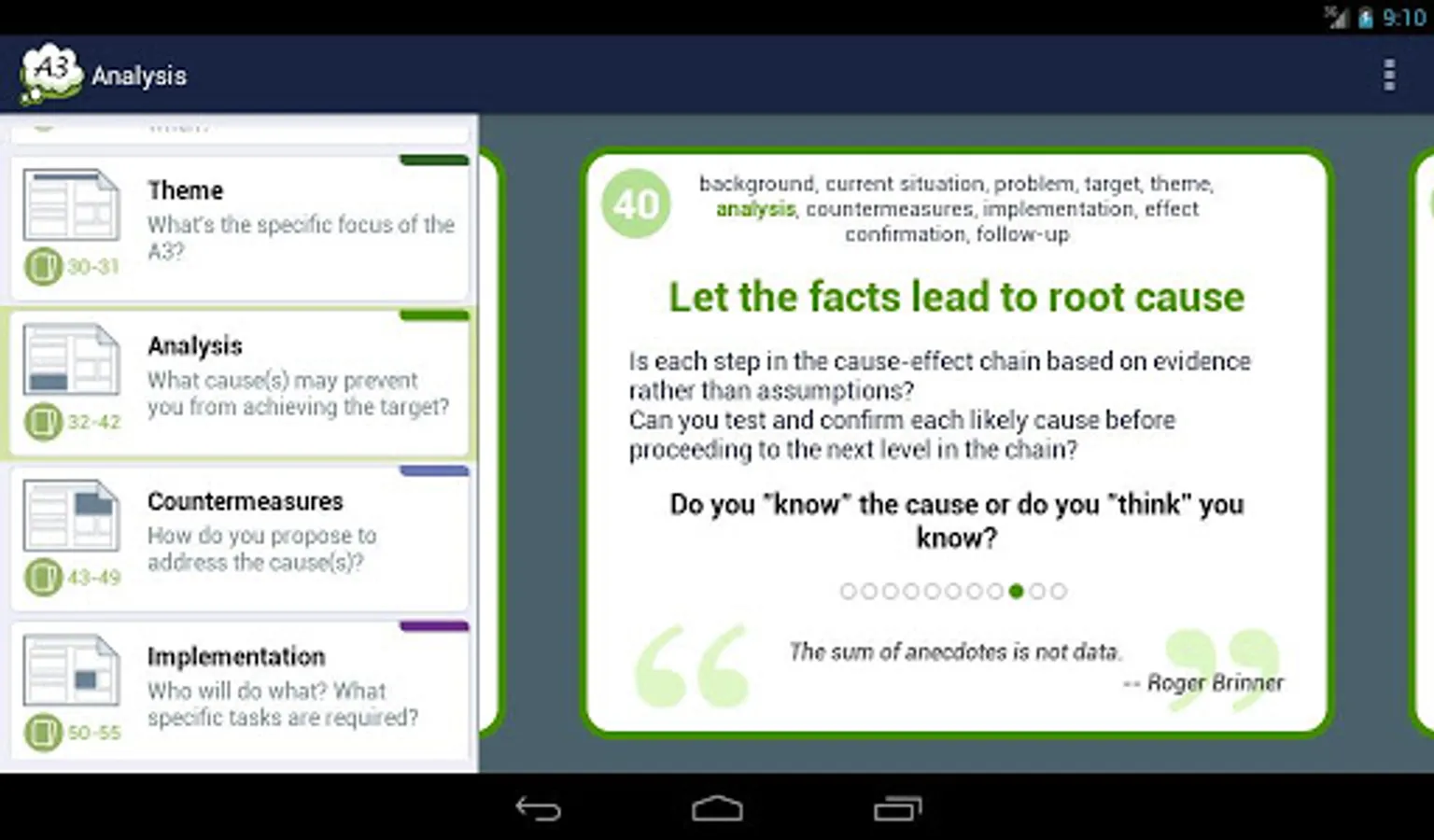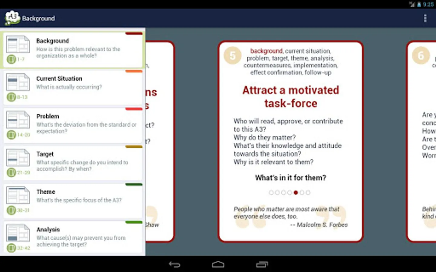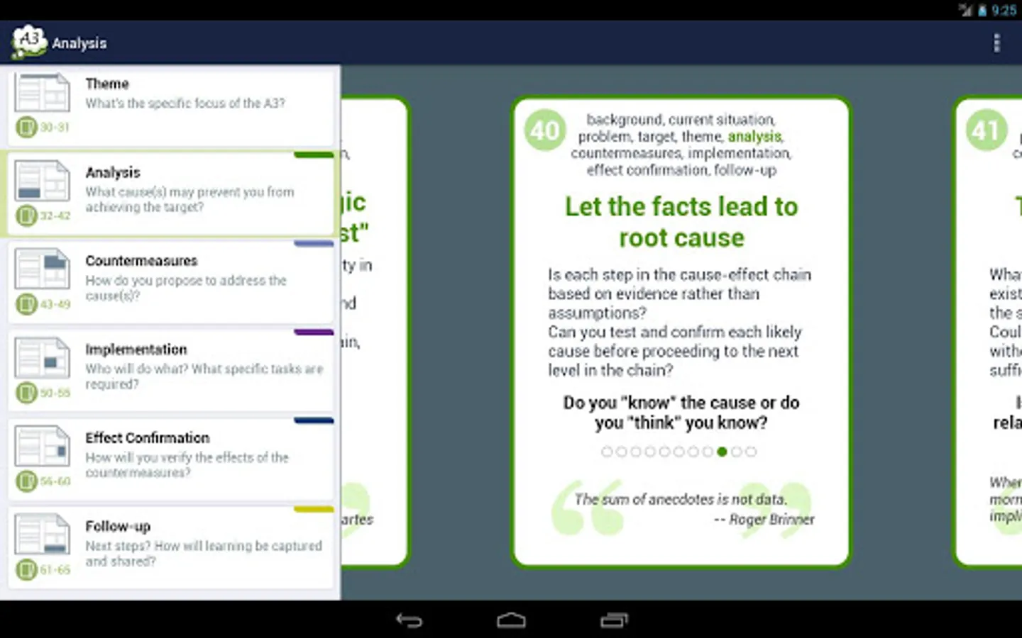 A3 Thinker for Android is a proud member of a growing family of original products based on the author’s years of hard-won experience in applying and deploying the famous A3 Thinking management approach originated in Toyota and adopted by Lean organisations worldwide.