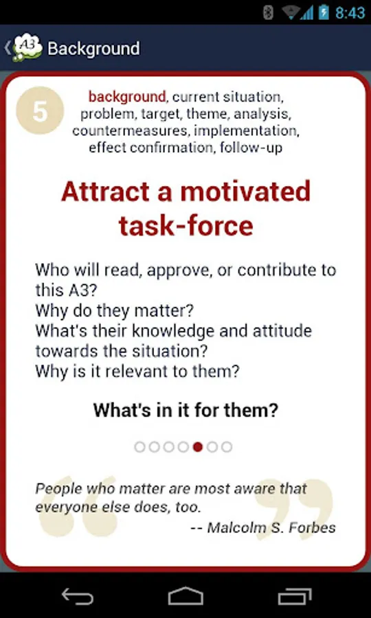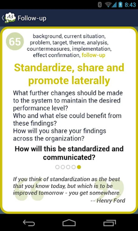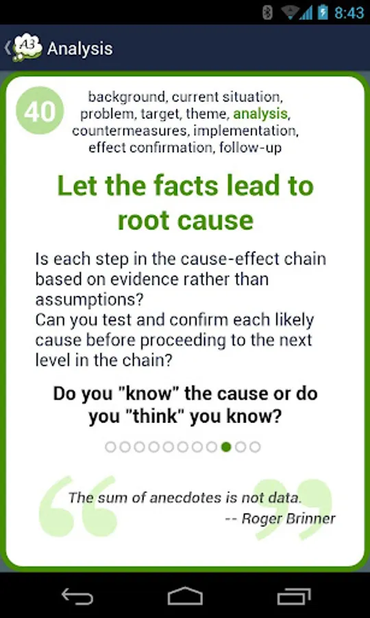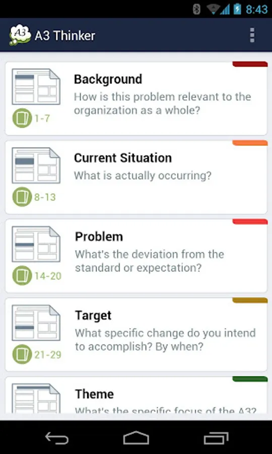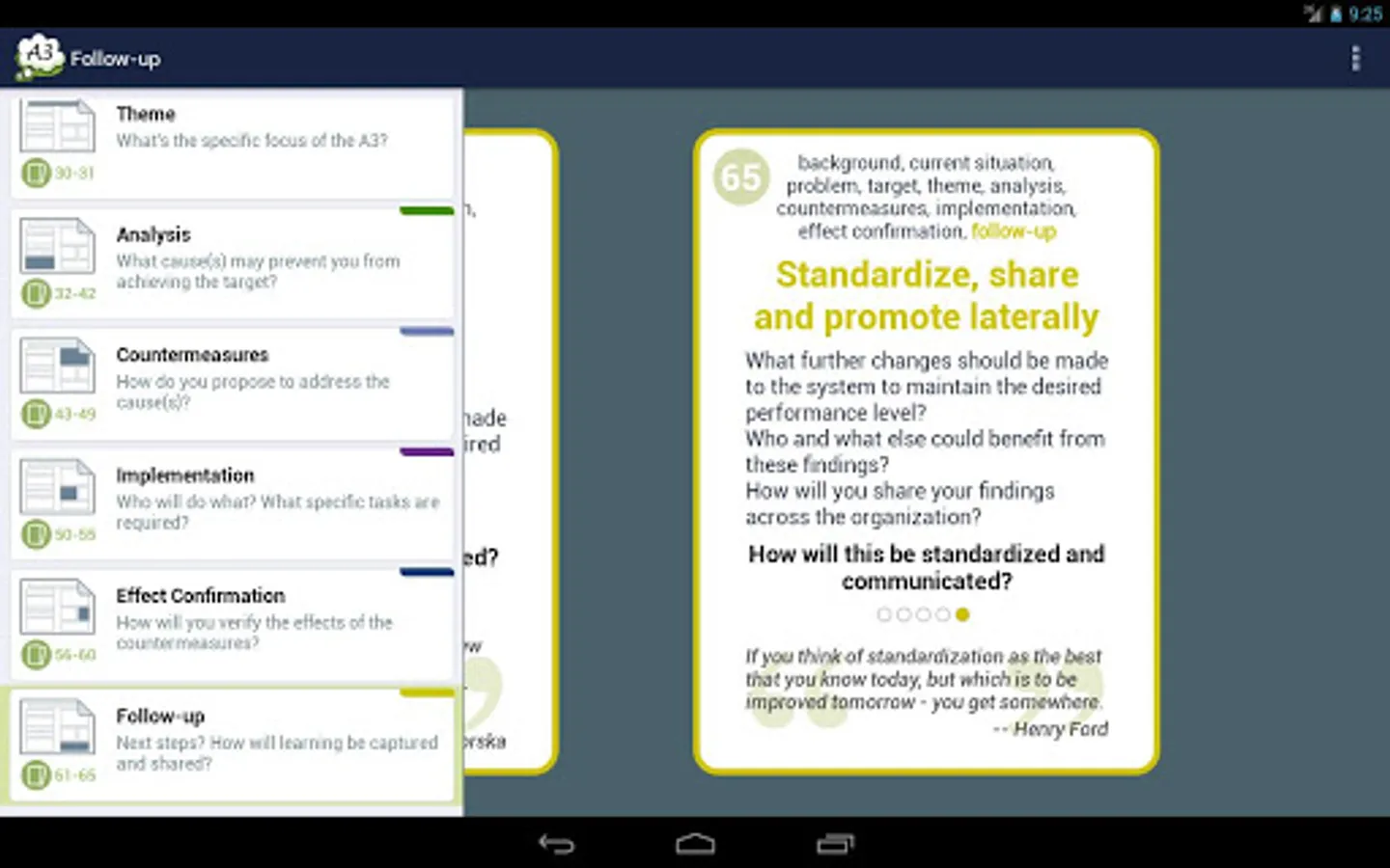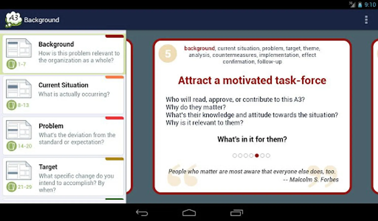 A3 Thinker for Android is a proud member of a growing family of original products based on the author’s years of hard-won experience in applying and deploying the famous A3 Thinking management approach originated in Toyota and adopted by Lean organisations worldwide.