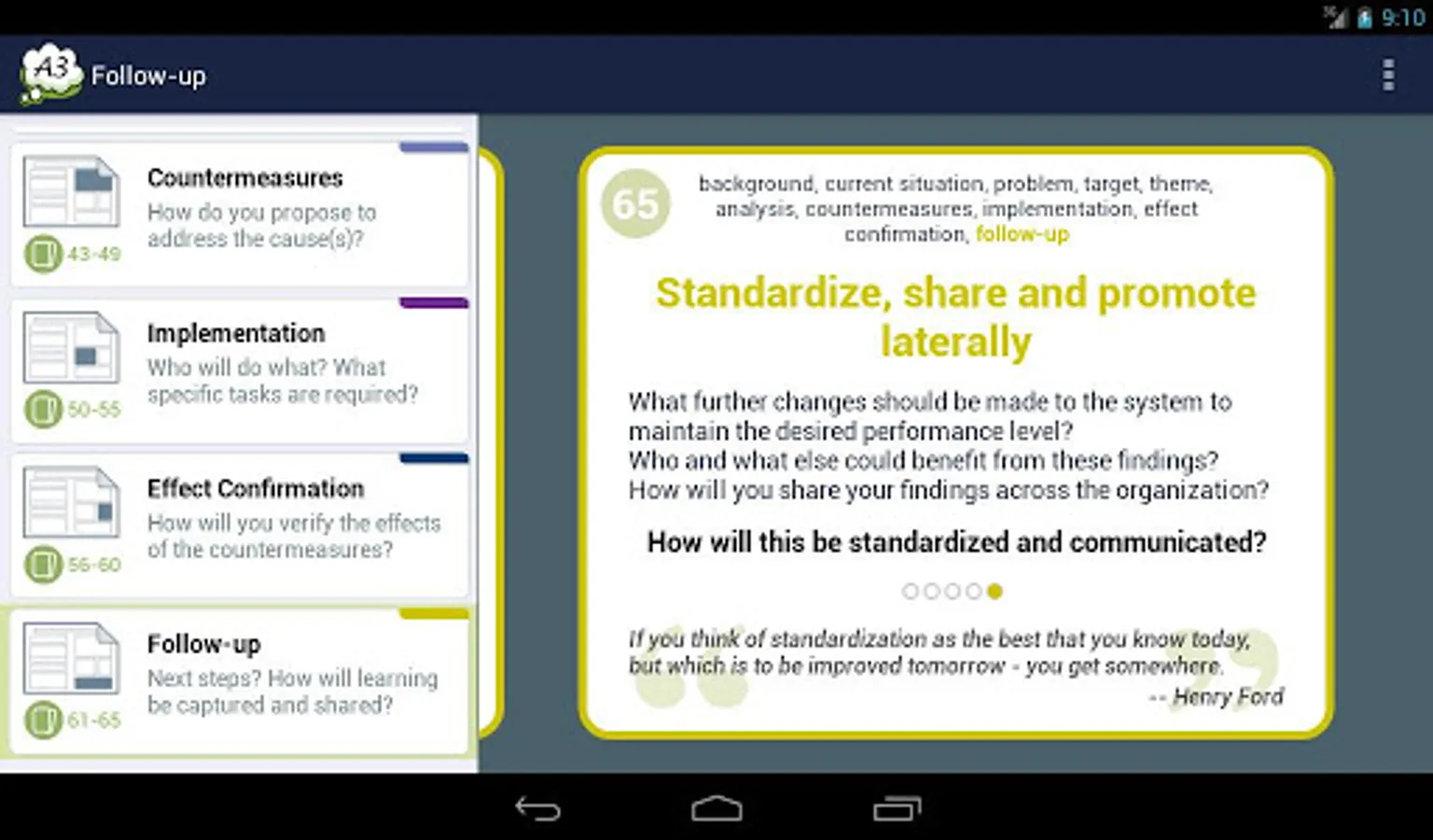With its focused questions, A3 Thinker will help you expand your circle of influence and engage teams and co-workers in efficient problem-solving conversations.