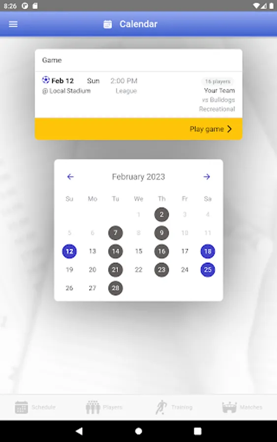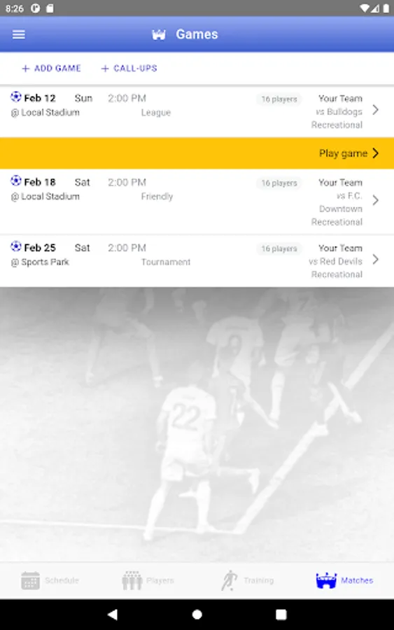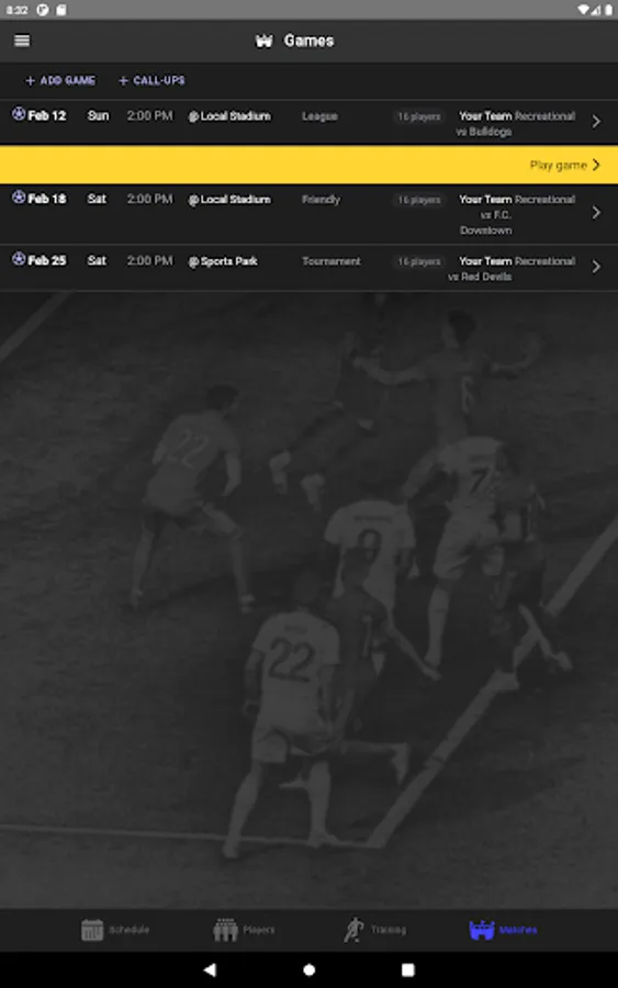 ● Handle different types of competitions, such as friendlies, leagues, and tournaments