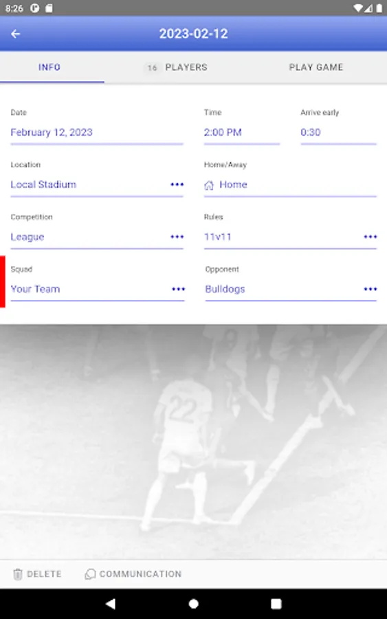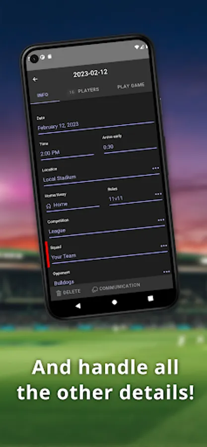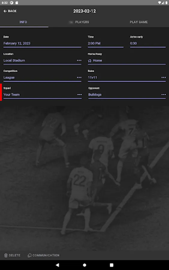 ● Create different sets of game-time rules for different competitions (i.e. number of players on the field, duration of the games, etc.)