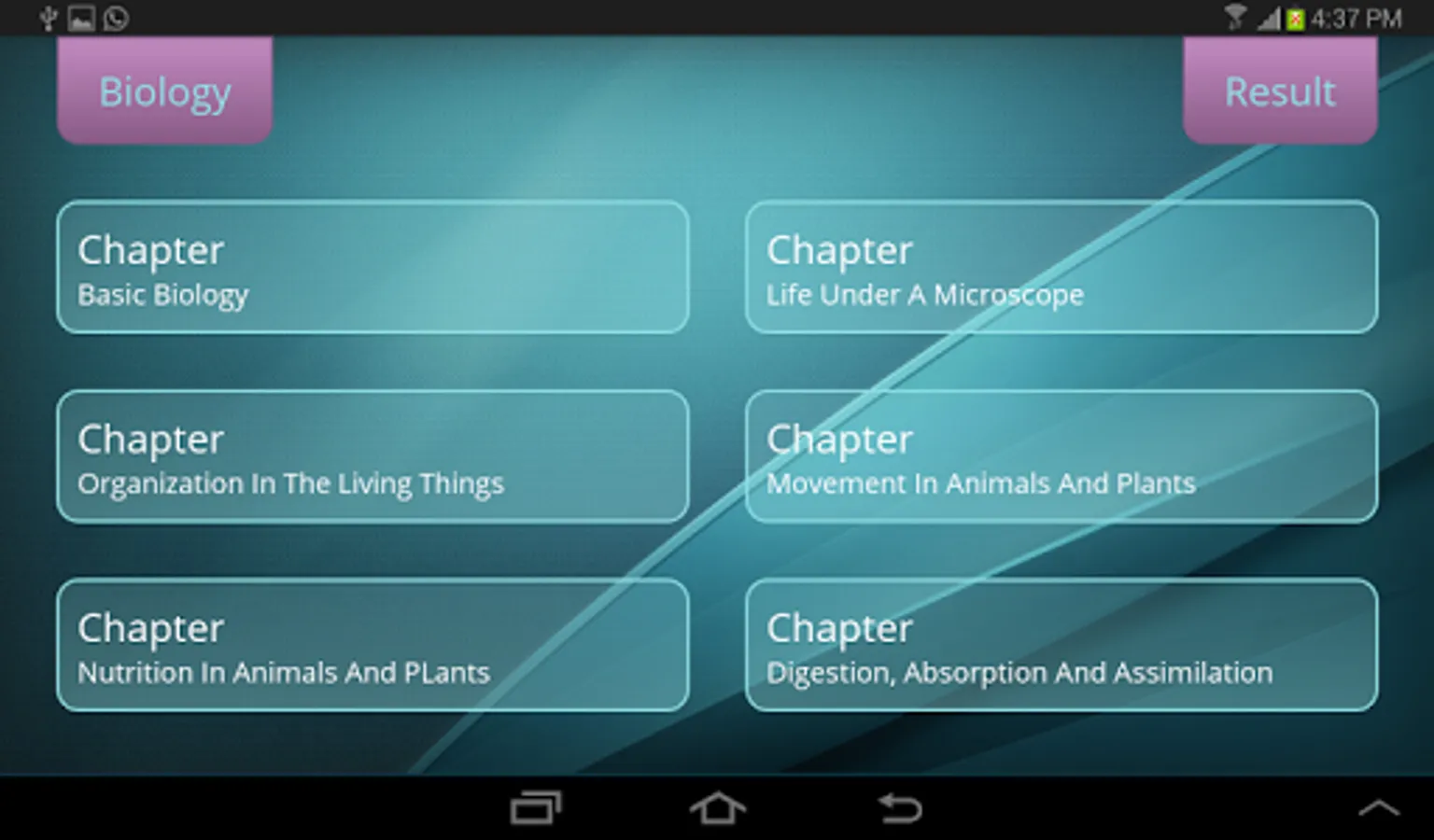 The intent of the app is to provide knowledge of Biology, Physics and Chemistry to standard 7 students in easy and quick manner. Students can play with it at anytime and anywhere.