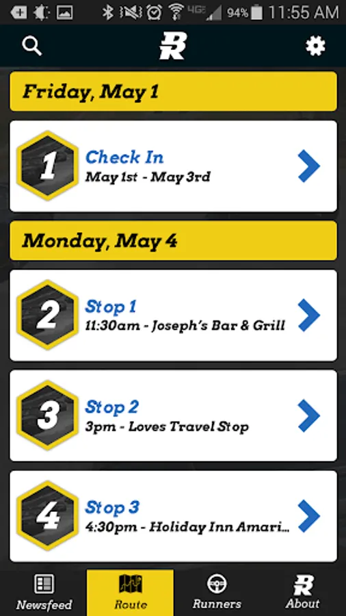 Users can see the route of the run and information about each stop along the way, as well as profile information for each runner.