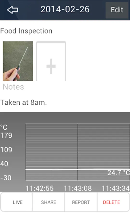 • Snapshot Record – Ability to record a single reading, along with title, picture and note.