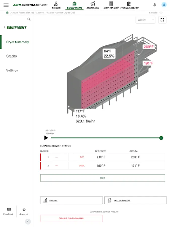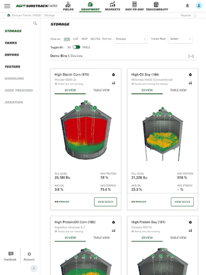AGI SureTrack™ is an independent hardware and software platform that collects real-time data from field activity, machinery, and equipment to drive profit through efficiencies and market transparency. IoT enabled devices and sensor technology fuel data from seed to market, including weather stations (FieldDataManager™), farm machinery (Farmobile PUC™ device), bin monitoring (BinManager™), fill level alerts (TankManager™), and automated grain conditioning (DryerManager™).