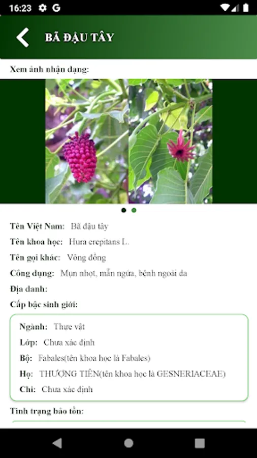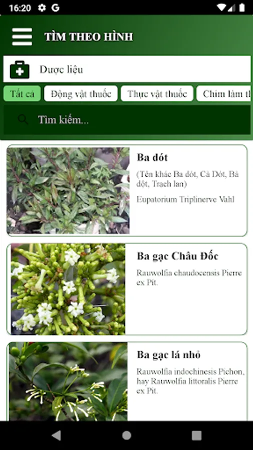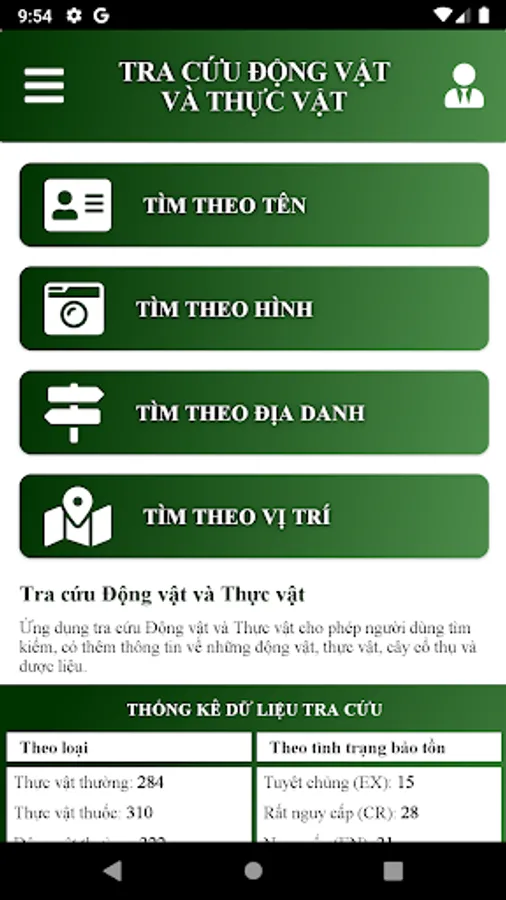 The application provides multi-modal information about Animals, Plants, Medicinal Materials and Ancient Trees. For each species, provide detailed information such as Vietnamese name, scientific name, other names, biological characteristics and many other related information.