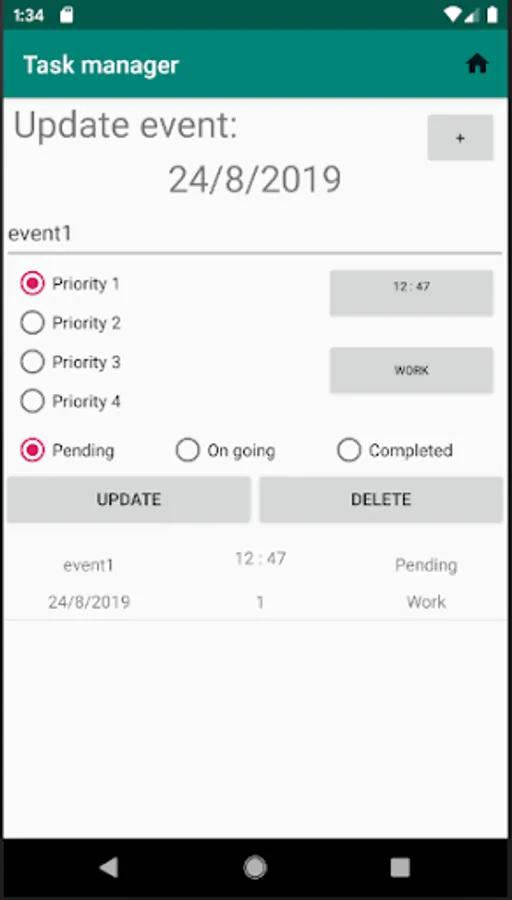 A full task manager application for daily use, you can set new events and set the notifications using a priority filter.