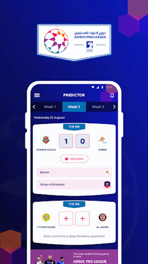 ADNOC PRO LEAGUE Fantasy Football is dedicated to fans of the United Arab Emirates' Professional Football League. You can create, manage and transfer on the move with the game's official app.