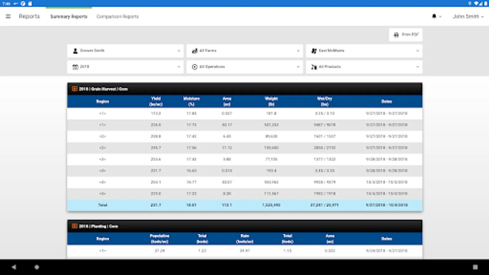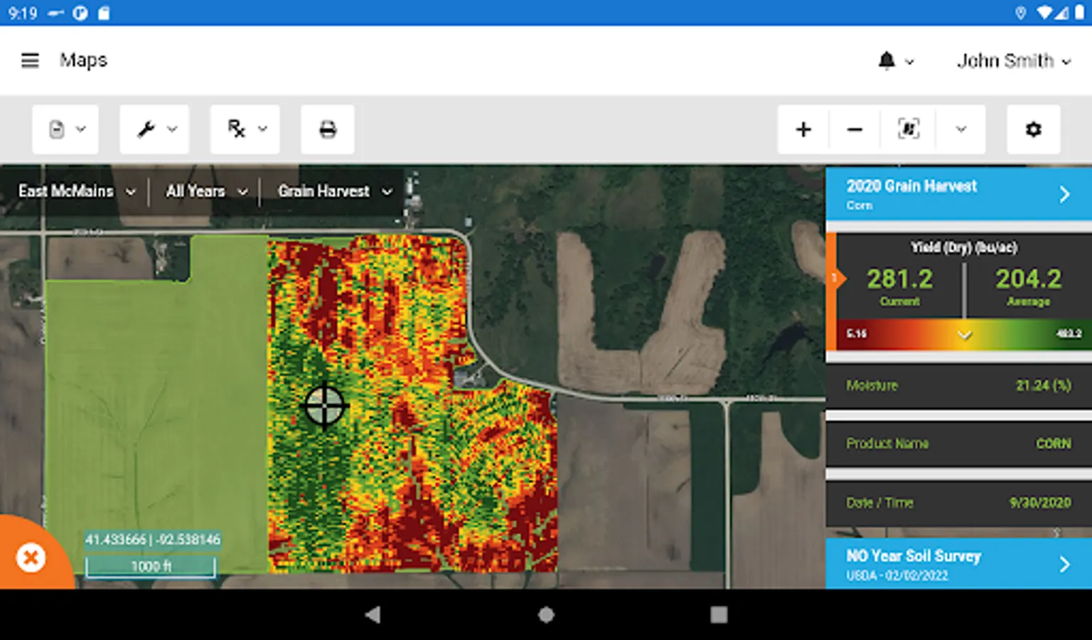 • Dig deeper and gain insights by utilizing simple tools like query and yield comparison reports or viewing multi-year analysis maps