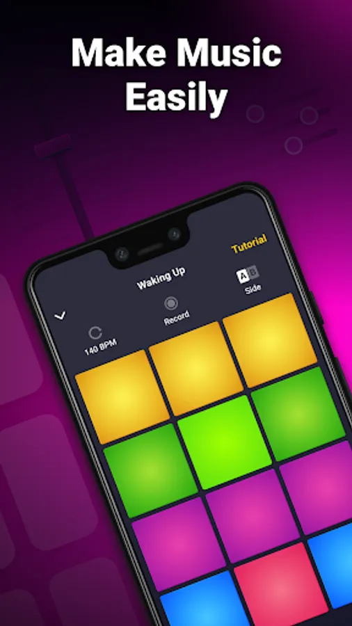 We make music production easy! With the help of the Drum Pad Machine soundboard, you can not only learn the basics of music creation, but mix music beats as well. A wide variety of sound effects will help you to create appropriate chords and use them both for piano and guitar.