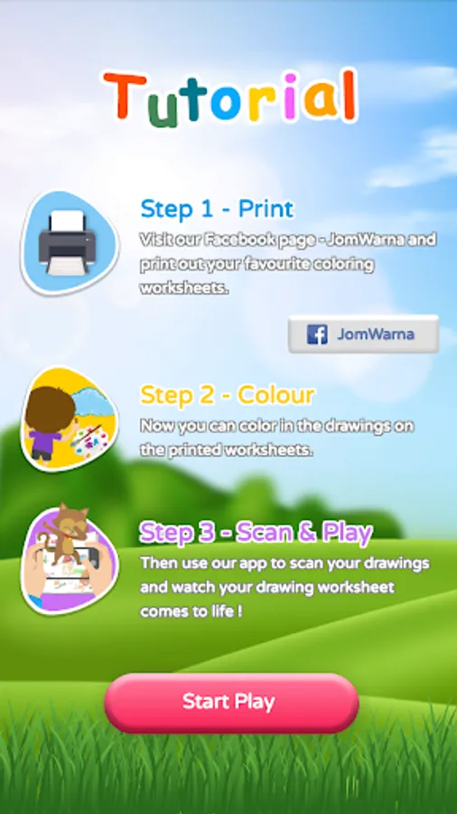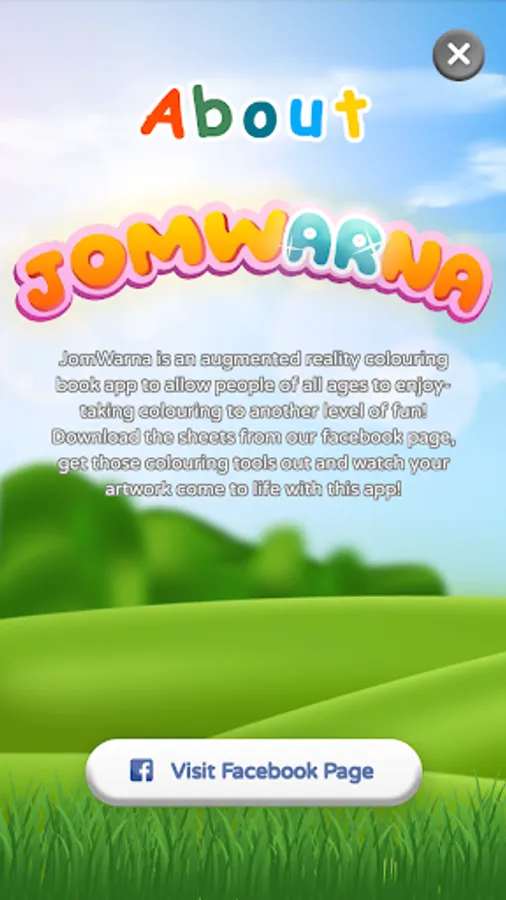 JomWarna is an augmented reality colouring book app to allow people of all ages to enjoy- taking colouring to another level of fun! Download the sheets from our facebook page, get those colouring tools out and watch your artwork come to life with this app!