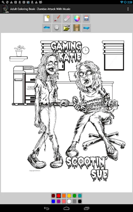 Cycle zombie filled coloring pages as the vibrant sounds play, and transport your mind to a virtual undead colorscape.