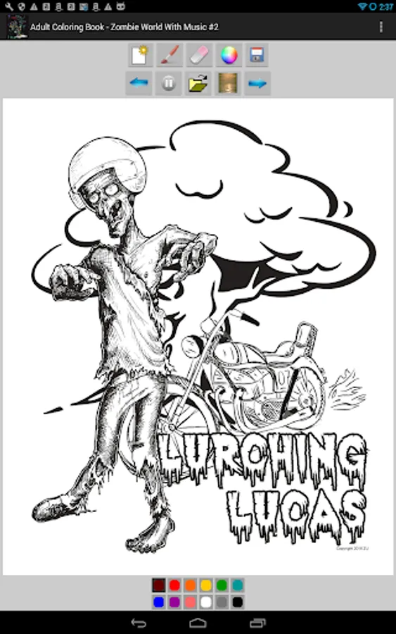 Cycle zombie filled coloring pages as the vibrant sounds play, and transport your mind to a virtual undead colorscape.