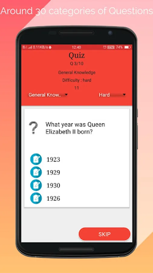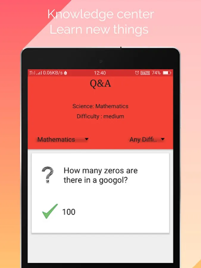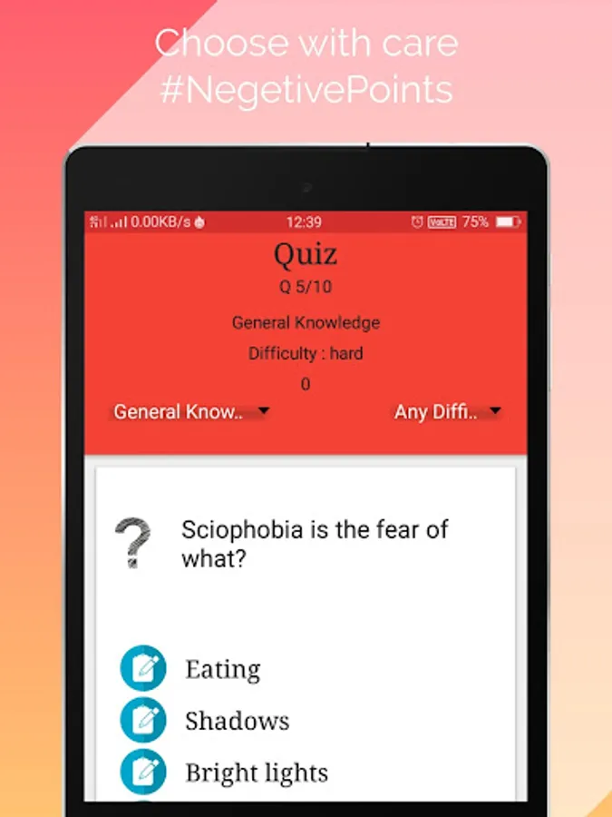 Quiz app challenges users by questions from 24 categories of questions. Thousands of topics to choose from